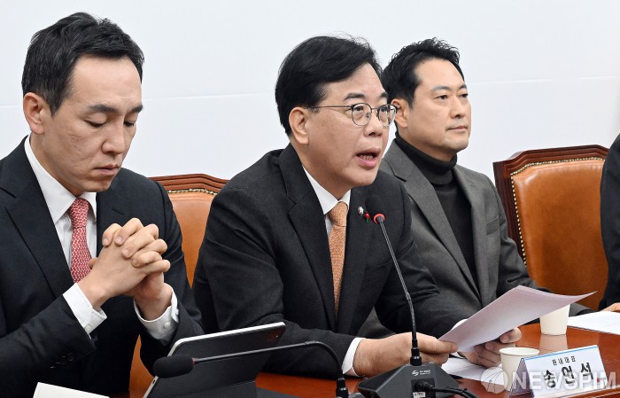 [서울=뉴스핌] 정일구 기자 = 송언석 국민의힘 원내대표가 18일 오전 서울 여의도 국회에서 열린 최고위원회의에서 모두발언을 하고 있다. 2025.12.18 mironj19@newspim.com