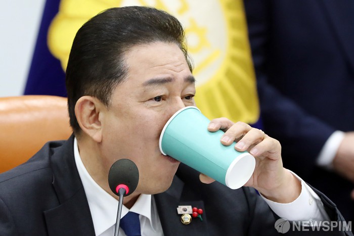 [서울=뉴스핌] 정일구 기자 = 김병기 더불어민주당 원내대표가 18일 오전 서울 여의도 국회 운영위원회 전체회의에서 물을 마시고 있다. 2025.12.18 mironj19@newspim.com