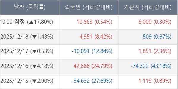 [장중수급포착] 일진파워, 외국인/기관 동시 순매수… 주가 +17.80%
