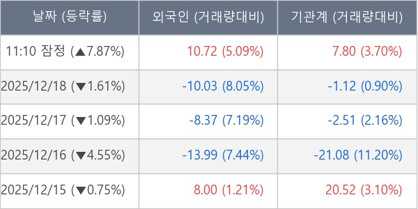 ※ 사모펀드 등 일부 기관의 순매매량은 표시되지 않음