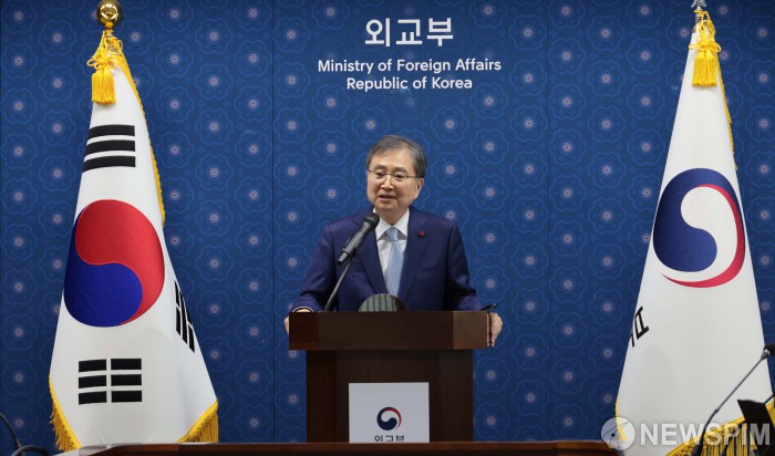 [서울=뉴스핌] 이길동 기자 = 조현 외교부 장관이 19일 서울 종로구 정부서울청사에서 외교부 업무보고 사후브리핑을 하고 있다. 2025.12.19 gdlee@newspim.com