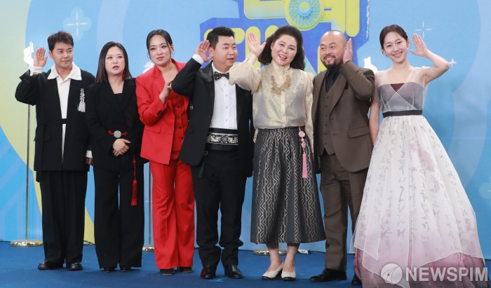 [서울=뉴스핌] 이형석 기자 = 사장님 귀는 당나귀 귀 출연진 전현무, 김숙, 정지선, 정호영, 이순실, 데이비드 리, 엄지인이 20일 오후 서울 여의도 KBS에서 열린 연예대상 시상식 포토월에서 포즈를 취하고 있다. 2025.12.20 leehs@newspim.com