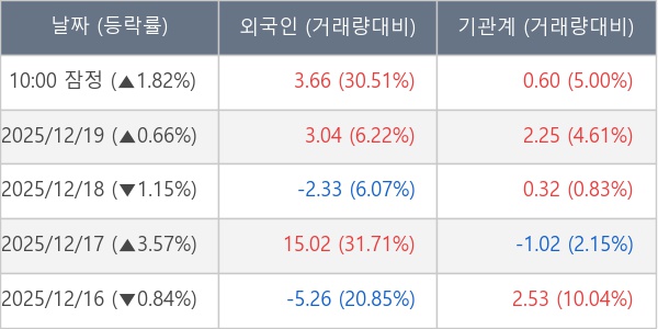 [표] 외국인ㆍ기관 순매매량 (단위 만주)