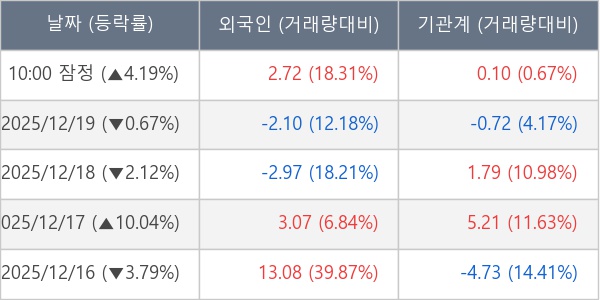 [표] 외국인ㆍ기관 순매매량 (단위 만주)