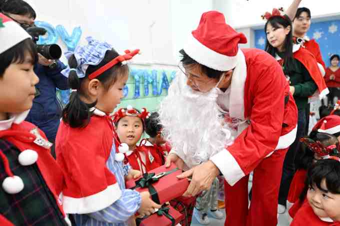 이날 산타 복장을 하고 어린이집에 깜짝 등장한 이상균 부회장은 아이 한 명 한 명과 눈을 맞추며 곰돌이 모양 바라클라바, 보드게임 등 준비한 선물을 고사리 같은 아이들의 손에 직접 건넸다.