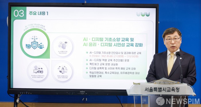 [서울=뉴스핌] 류기찬 기자 = 정근식 서울시교육감이 23일 오전 서울 종로구 서울특별시교육청에서 ‘초중고 AI 교육 종합계획 발표 기자회견’을 열고 있다. 2025.12.23 ryuchan0925@newspim.com