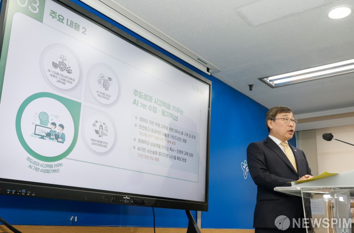 [서울=뉴스핌] 류기찬 기자 = 정근식 서울시교육감이 23일 오전 서울 종로구 서울특별시교육청에서 ‘초중고 AI 교육 종합계획 발표 기자회견’을 열고 있다. 2025.12.23 ryuchan0925@newspim.com