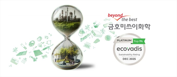 [서울=뉴스핌] 정탁윤 기자 = 금호미쓰이화학(대표이사 회장 박찬구)은 글로벌 공급망 지속가능성 평가기관인 에코바디스(EcoVadis)로부터 최상위(1%) 등급인 플래티넘(PLATINUM) 등급을 획득했다고 23일 밝혔다.