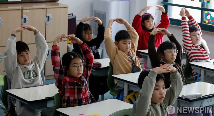 [서울=뉴스핌] 류기찬 기자 = 24일 오후 서울 동대문구 서울안평초등학교에서 열린 겨울방학식에서 학생들이 겨울방학 유의사항 퀴즈를 풀고 있다. 2025.12.24 ryuchan0925@newspim.com