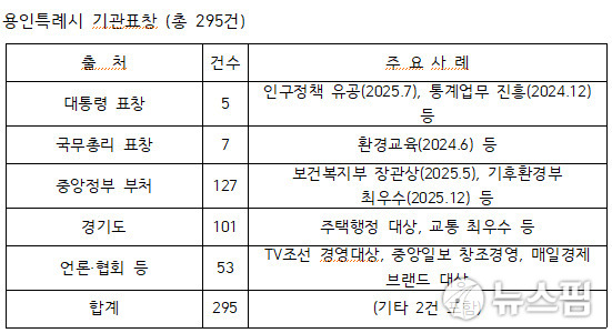 [용인=뉴스핌] 노호근 기자 = 용인특례시와 이상일 용인특례시장이 민선8기 출범 이후 약 3년 반 동안 중앙정부와 지방자치단체, 단체로부터 수백 건의 표창과 감사패·감사편지를 받은 것으로 확인됐다.