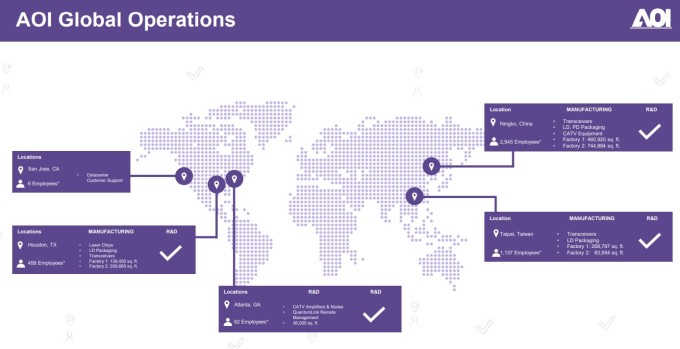 1997년 2월 휴스턴대학교에서 설립된 어플라이드 옵토일렉트로닉스는 미국 텍사스주 슈거랜드에 본사를 두고 있다.전 직원 35명의 소규모 기업으로 시작했지만, 현재는 슈거랜드만 해도 약 450명의 직원을 고용하는 글로벌 광통신 기업으로 성장했다.