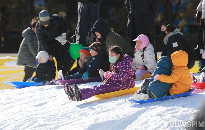 [서울=뉴스핌] 이형석 기자 = 크리스마스를 맞이한 25일 오후 서울 노원 씽씽눈설매장에서 아이들이 눈썰매를 타고 있다. 2025.12.25 leehs@newspim.com