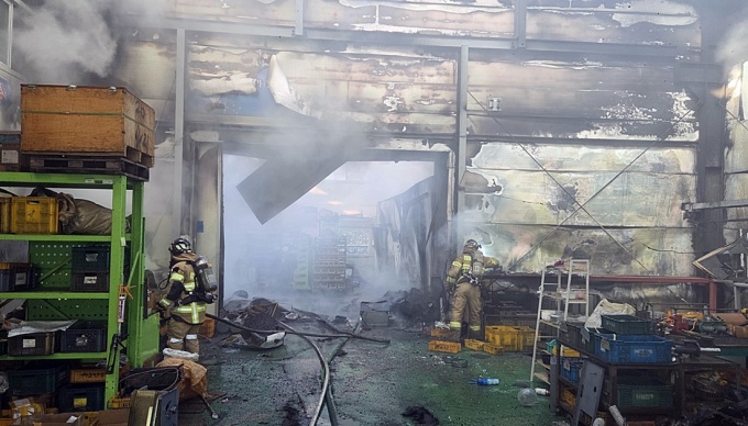 소방 당국은 발화 건물에 인접한 공장 본 건물과 인근 야산으로의 연소 확산 차단과 완전 진화에 주력하고 있다.