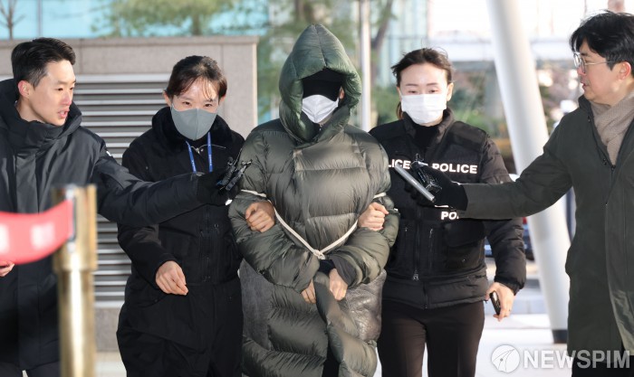 [서울=뉴스핌] 양윤모 기자 = 마약 혐의로 수사선상에 오른 상태에서 해외로 도피했다가 체포된 남양유업 창업주 홍두영의 외손녀 황하나씨가 26일 오전 수원지방법원 안양지원에서 열린 구속 전 피의자 심문(영장실질심사)에 출석하며 취재진의 질문을 받고 있다. 배우 박유천과 연애했었던 황씨는 2023년 12월 마약 혐의로 수사선상에 오른 상태에서 경찰이 캄보디아로 건너가 황씨의 신병을 인수하고 프놈펜 태초국제공항의 국적기 내에서 체포영장을 집행했다. [공동취재] 2025.12.26 yym58@newspim.com
