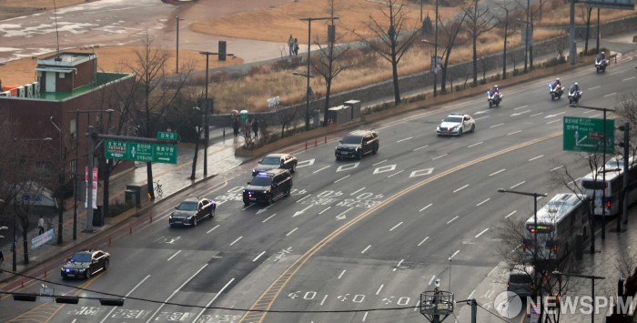 [서울=뉴스핌] 이길동 기자 = 이재명 대통령이 탄 차량이 29일 오전 서울 종로구 동십자각을 지나 청와대로 향하고 있다. 2022년 5월 윤석열 정부가 대통령실을 용산으로 옮긴 지 약 3년 7개월 만이다. 2025.12.29. gdlee@newspim.com