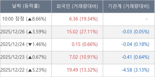 [표] 외국인ㆍ기관 순매매량 (단위 만주)