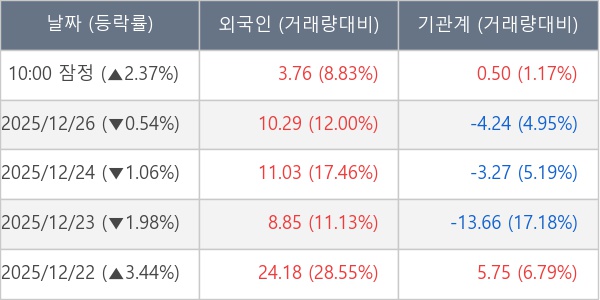 ※ 사모펀드 등 일부 기관의 순매매량은 표시되지 않음