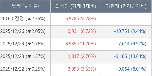 [표] 외국인ㆍ기관 순매매량 (단위 주)