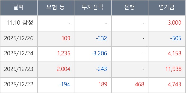 ※ 사모펀드 등 일부 기관의 순매매량은 표시되지 않음