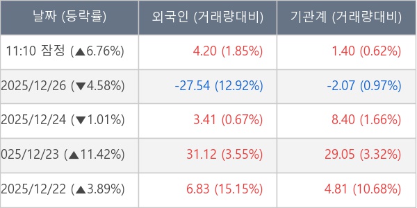 ※ 사모펀드 등 일부 기관의 순매매량은 표시되지 않음