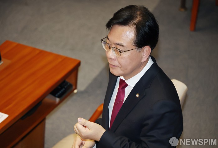 [서울=뉴스핌] 정일구 기자 = 송언석 국민의힘 원내대표가 30일 오후 서울 여의도 국회에서 열린 본회의에 참석하고 있다. 2025.12.30 mironj19@newspim.com