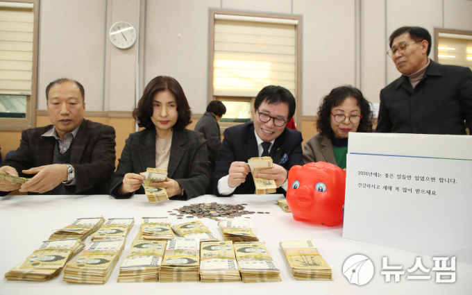 노송동 직원들이 9000여만원의 성금을 개봉하고 있다.[사진=전주시] 2025.12.30 lbs0964@newspim.com