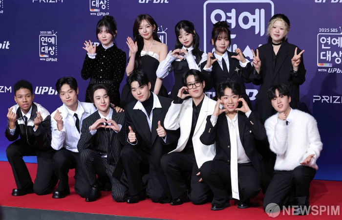 [서울=뉴스핌] 윤창빈 기자 = 예능 우리들의 발라드 TOP12(이예지,이지훈,천범석,최은빈,홍승민,송지우,임지성,민수현,김윤이,이준석,정지웅,오추바 제레미)가 30일 서울 마포구 SBS프리즘타워에서 열린 2025 SBS 연예대상 포토월에서 포즈를 취하고 있다. 2025.12.30 pangbin@newspim.com