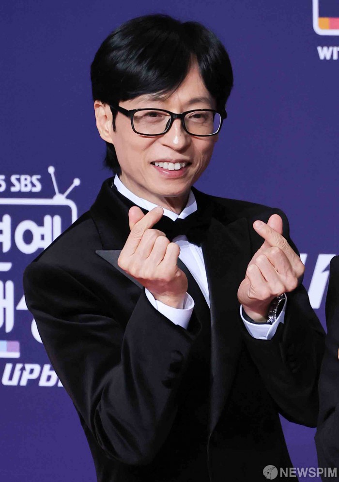 [서울=뉴스핌] 윤창빈 기자 = 유재석이 30일 서울 마포구 SBS프리즘타워에서 열린 2025 SBS 연예대상 포토월에서 포즈를 취하고 있다. 2025.12.30 pangbin@newspim.com