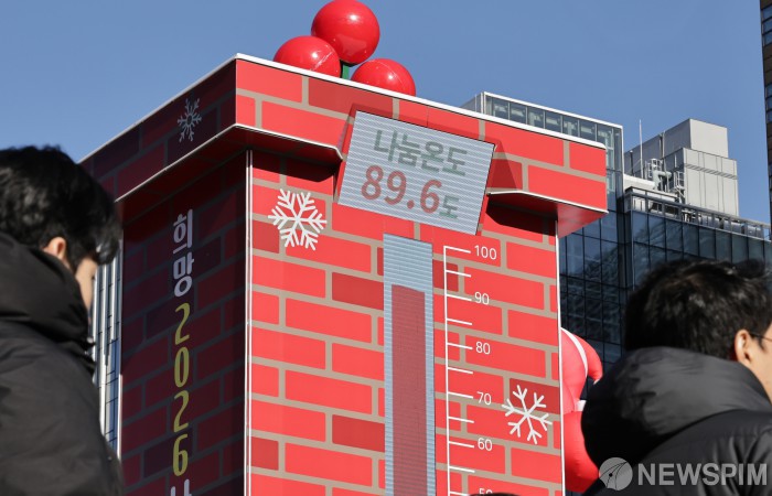 [서울=뉴스핌] 양윤모 기자 = 2025년 마지막날인 12월 31일 서울 종로구 광화문광장 사랑의 온도탑이 나눔온도 89.6도를 가리키고 있다. 사랑의열매 사회복지공동모금회 ‘희망2026나눔캠페인’의 올해 목표 모금액은 4500억원으로 1%가 쌓일 때마다 온도탑 온도가 1도씩 올라가며 내년 1월 31일까지 진행된다. 2025.12.31 yym58@newspim.com