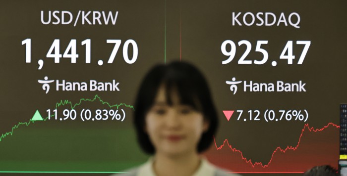 [서울=뉴스핌] 양윤모 기자 = 2025년 증시폐장일인 30일 오후 코스피가 전장 종가보다 6.39 포인트(0.15%) 하락하며 4214.17로, 코스닥은 7.12 포인트(0.76%) 하락한 925.47로 장을 마감한 가운데, 서울 중구 하나은행 딜링룸에서 직원들이 업무를 보고 있다. 서울외환시장에서 달러/원 환율은 전장 대비 11.90원 상승한 1441.70원에 주간거래를 마감했다. 2025.12.30 yym58@newspim.com