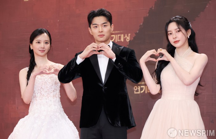 [서울=뉴스핌] 정일구 기자 = 배우 박정연, 손상연, 신수현이 31일 오후 서울 영등포구 KBS 웨딩홀에서 열린 2025 KBS 연기대상 레드카펫에서 포즈를 취하고 있다. 2025.12.31 mironj19@newspim.com