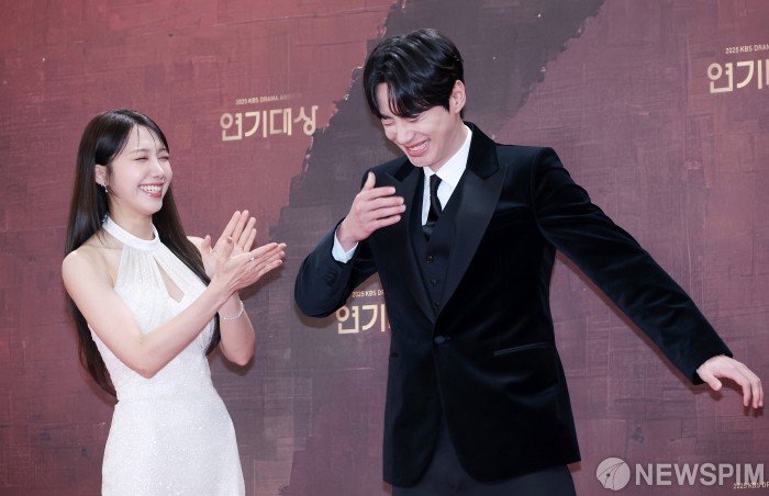 [서울=뉴스핌] 정일구 기자 = 배우 정은지, 이준영이 31일 오후 서울 영등포구 KBS 웨딩홀에서 열린 2025 KBS 연기대상 레드카펫에서 포즈를 취하고 있다. 2025.12.31 mironj19@newspim.com