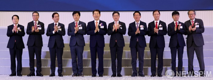 [서울=뉴스핌] 최지환 기자 = 정은보 한국거래소 이사장을 비롯한 참석자들이 2일 오전 서울 영등포구 한국거래소 서울사무소에서 열린 2026년도 증권·파생상품시장 개장식에서 개장신호식을 하고 있다. 왼쪽부터 김영재 상장회사협의회장, 김학수 넥스트레이드 사장, 황성엽 금융투자협회장, 오기형 코스피 5000 특위위원장, 정은보 한국거래소 이사장, 이억원 금융위원장, 김상훈 밸류업특위위원장, 이찬진 금융감독원장, 이동훈 코스닥협회장, 황창순 코넥스협회장. 2026.01.02 choipix16@newspim.com