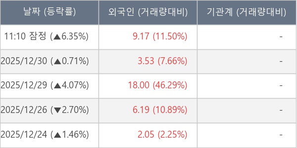 [장중수급포착] 코데즈컴바인, 외국인 6일 연속 순매수행진... 주가 +6.35%