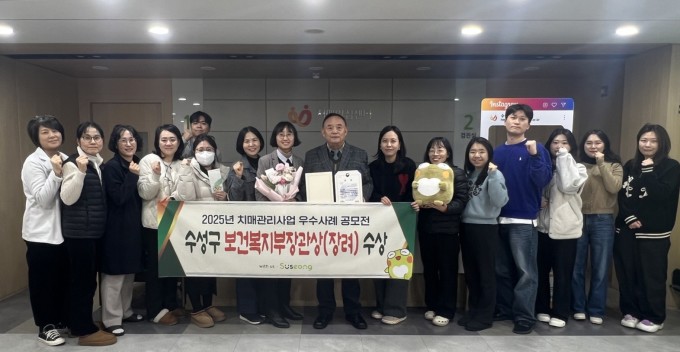 [대구=뉴스핌] 김용락 기자=대구 수성구 치매안심센터는 보건복지부와 중앙치매센터가 공동주최한 '2025년 치매관리사업 우수사례 공모전'에서 '치매환자 및 보호자 지원' 분야의 우수성을 인정받아 보건복지부장관상을 수상했다고 2일 밝혔다.