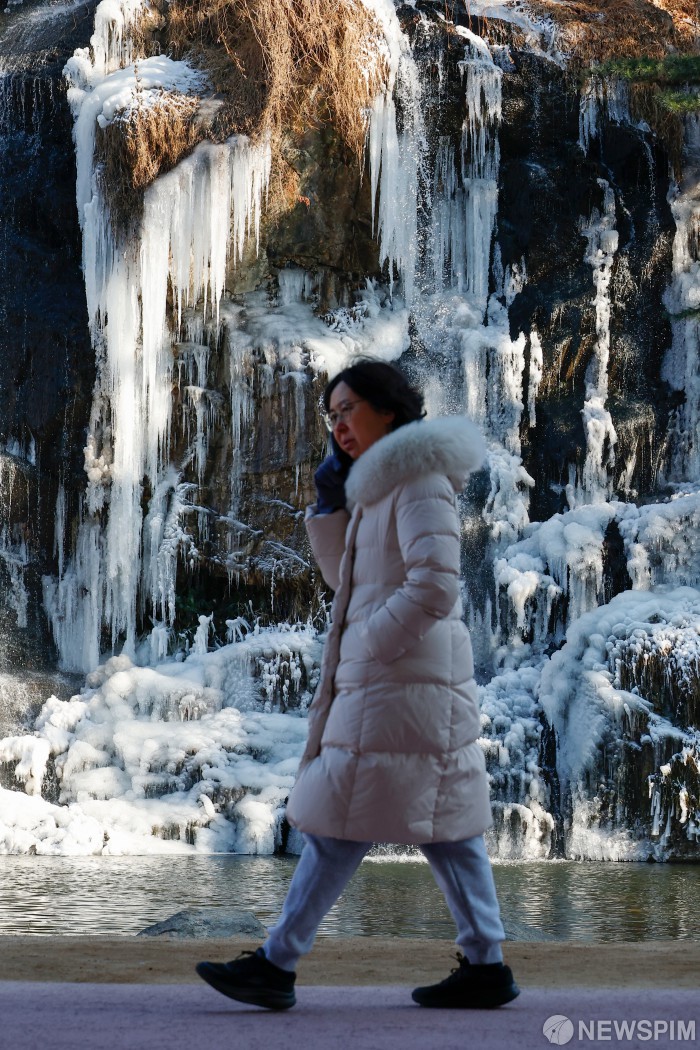 [서울=뉴스핌] 류기찬 기자 = 한파가 찾아온 2일 오후 서울 서대문구 홍제천 인공폭포 일부가 얼어붙어 있다. 2026.01.02 ryuchan0925@newspim.com