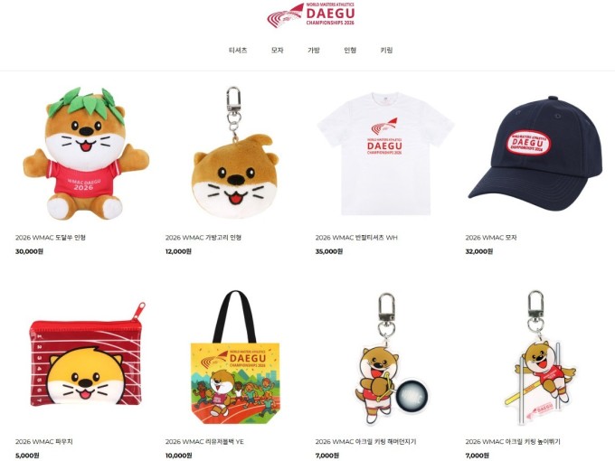 [대구=뉴스핌] 김용락 기자=2026 대구세계마스터즈육상경기대회 조직위원회(조직위)는 대회 분위기 붐업을 위해 마스코트 등 상징물을 활용한 공식 상품을 개발하고 오는 5일부터 본격적인 판매에 나선다고 4일 밝혔다.