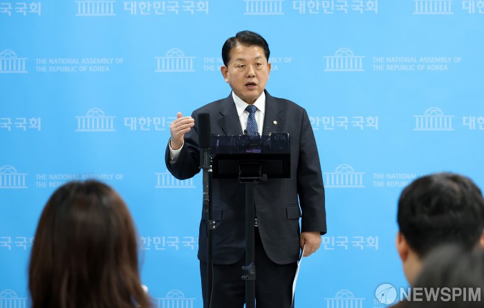 [서울=뉴스핌] 정일구 기자 = 김병주 더불어민주당 의원이 5일 오전 서울 여의도 국회 소통관에서 경기도지사 출마 선언 기자회견을 열고 취재진 질문에 답하고 있다. 2026.01.05 mironj19@newspim.com