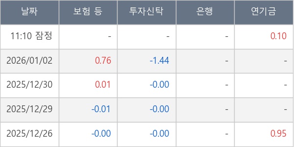 [표] 주요 기관별 순매매량 (단위 만주)
