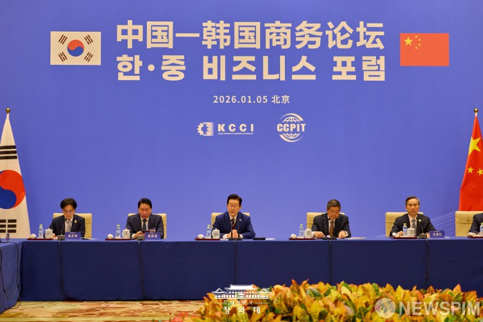 [베이징=뉴스핌] 박찬제 기자 = 이재명 대통령은 5일 "한중 교역이 3000억 달러(434조원) 수준에 정체돼 있어 새로운 항로와 시장 개척이 반드시 필요하다"고 강조했다.