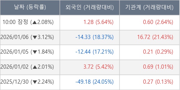 [장중수급포착] 유진로봇, 기관 9일 연속 순매수행진... 주가 +2.08%
