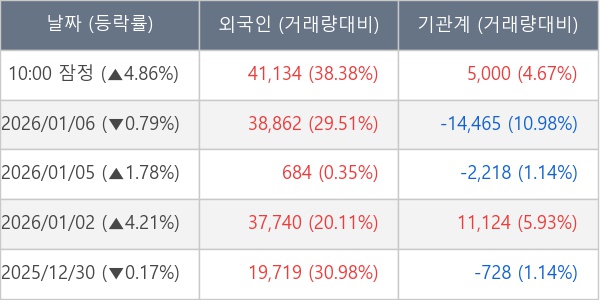 [표] 주요 기관별 순매매량 (단위 주)