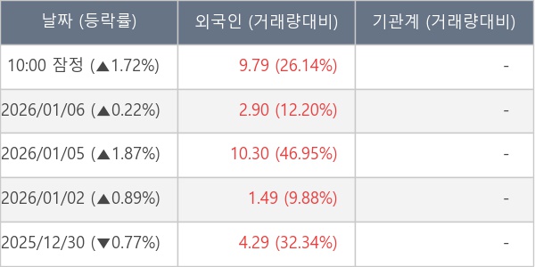 [장중수급포착] 리튬포어스, 외국인 8일 연속 순매수행진... 주가 +1.72%