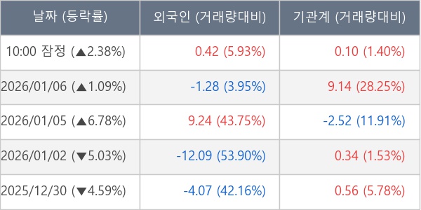 [장중수급포착] 진성티이씨, 외국인/기관 동시 순매수… 주가 +2.38%