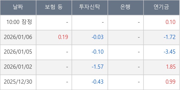 ※ 사모펀드 등 일부 기관의 순매매량은 표시되지 않음