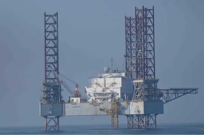 서해 중국 고정 구조물. 중동에서 약 30년간 사용되던 프랑스제 시추선으로, 2016년 폐처리됐을 때 중국이 매입·개조해 2022년 10월 서해 잠정조치수역에 설치했다. 해수부 해양조사선 온누리호가 지난해 2월 26일 현장 조사에 나가 실제 촬영한 것이다. [사진=국민의힘 엄태영 의원] 2026.01.07 gomsi@newspim.com