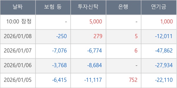 [표] 주요 기관별 순매매량 (단위 주)