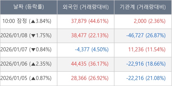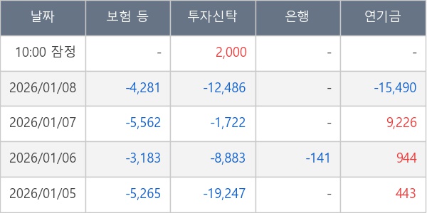 [표] 주요 기관별 순매매량 (단위 주)