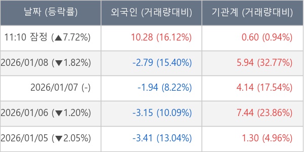 [표] 주요 기관별 순매매량 (단위 만주)