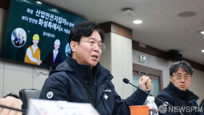 [서울=뉴스핌] 김영훈 고용노동부 장관이 9일 경기 화성시 화성시청에서 열린 소규모 사업장에 대한 산업재해 예방·대응방안 간담회에서 발언하고 있다.[사진=고용노동부] 2026.01.09 photo@newspim.com
